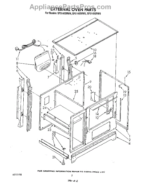 Parts for Whirlpool SF5140SRN5: 02 - External Oven Parts