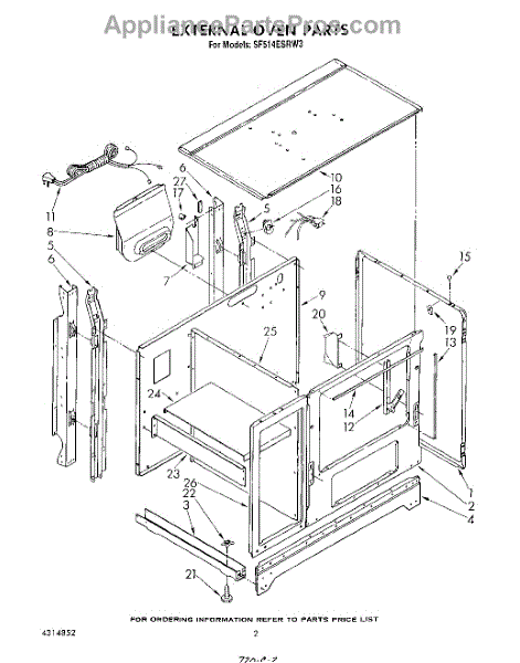 Parts for Whirlpool SF514ESRN3: 02 - External Oven Parts