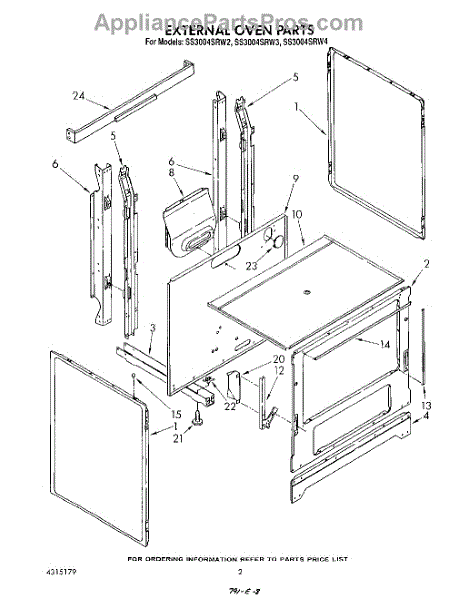 Parts for Whirlpool SS3004SRW4: 02 - External Oven Parts