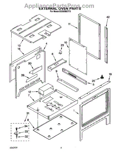 Parts for Whirlpool SS363BETT3: 03 - External Oven Parts