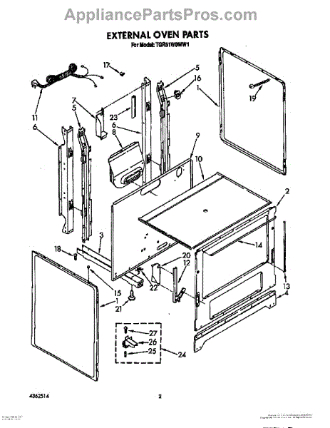 Parts for Whirlpool TGR51W0WN1: 02 - External Oven Parts
