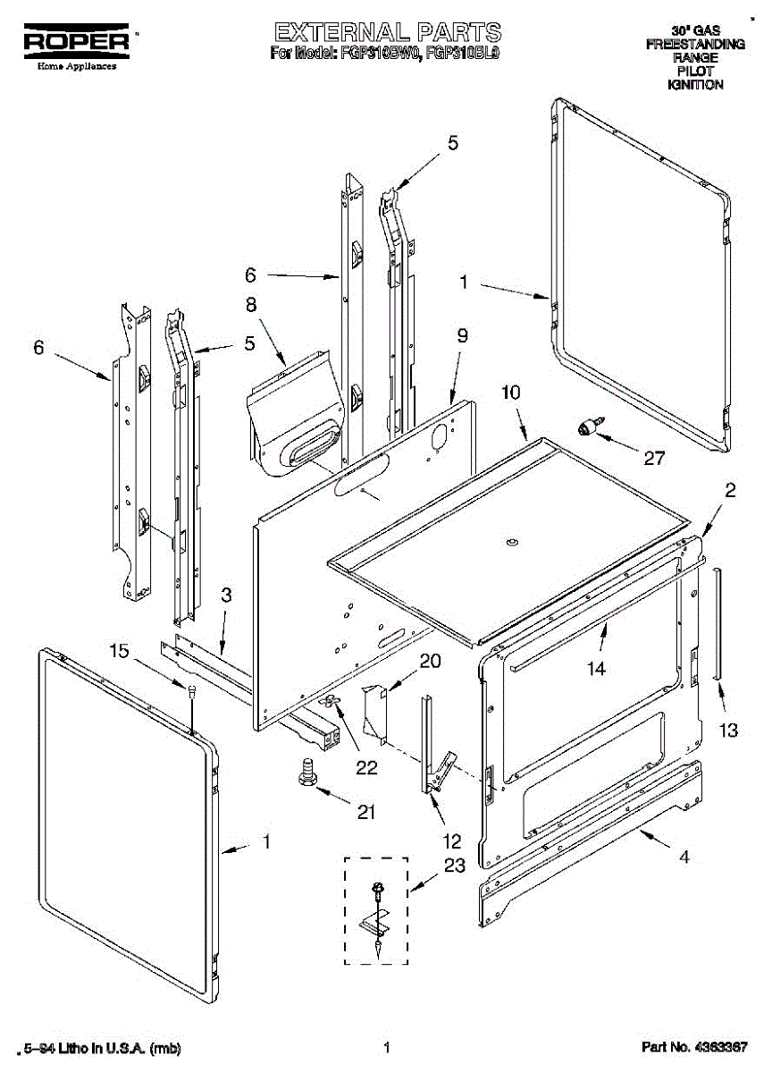 Screw secures appliance panels and access covers. Replace missing, stripped, or corroded screws to restore tight fit and eliminate rattles or gaps.