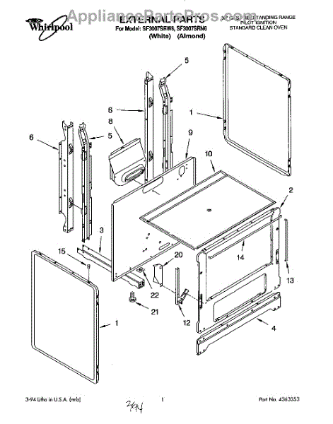 Parts for Whirlpool SF3007SRN6: 01 - External Parts