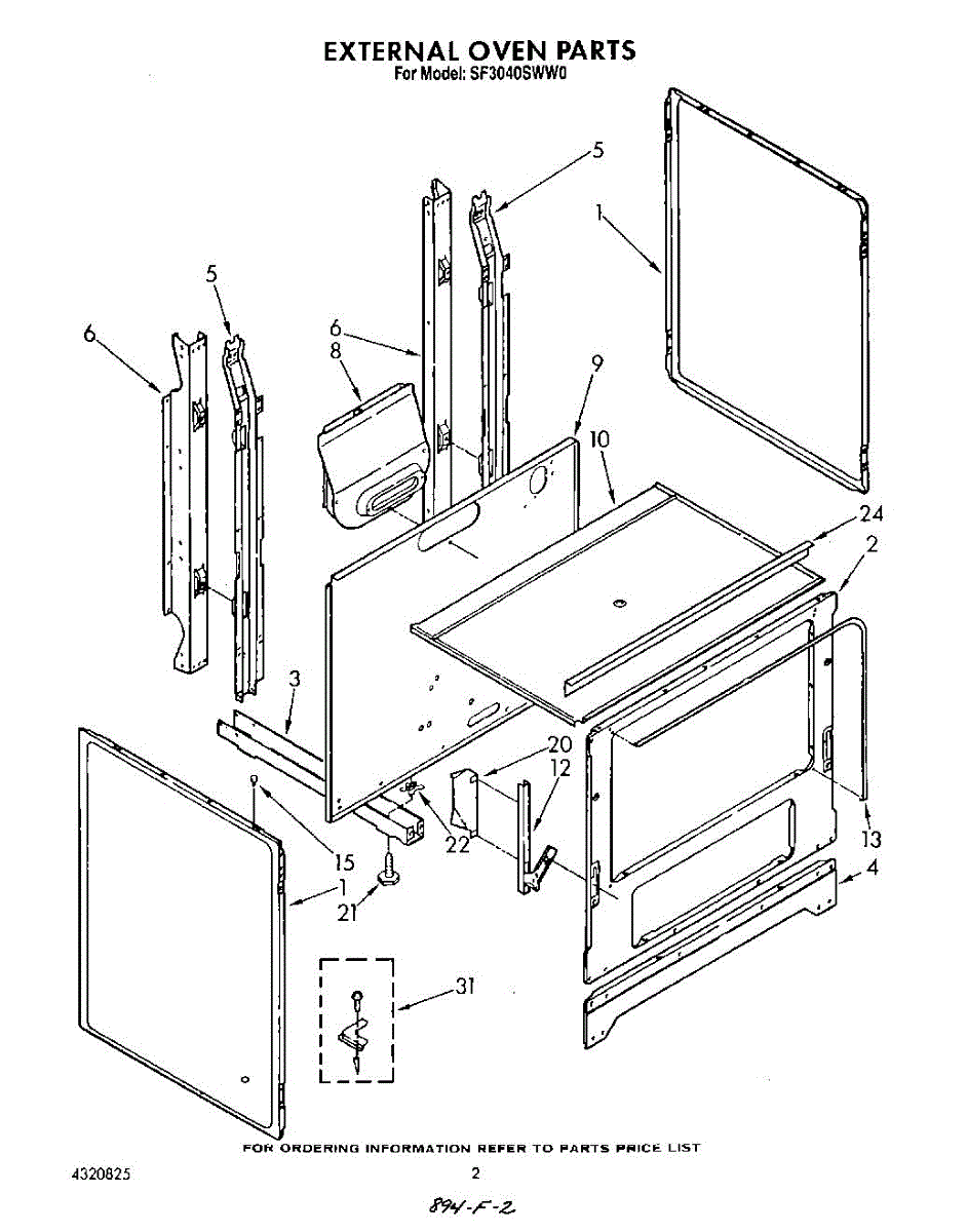 Parts for Whirlpool SF3040SWW0: 02 - External Parts