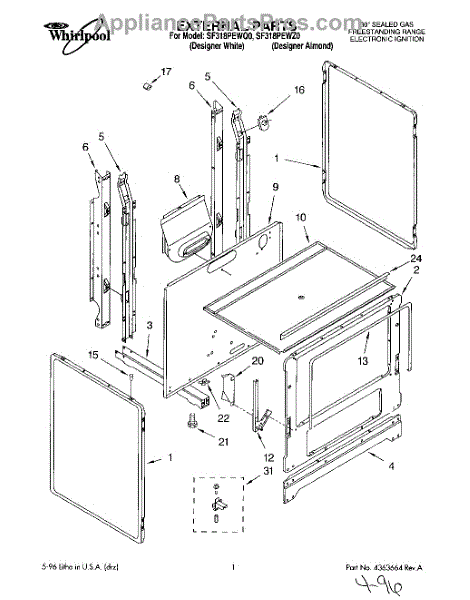 Parts for Whirlpool SF318PEWQ0: 01 - External Parts