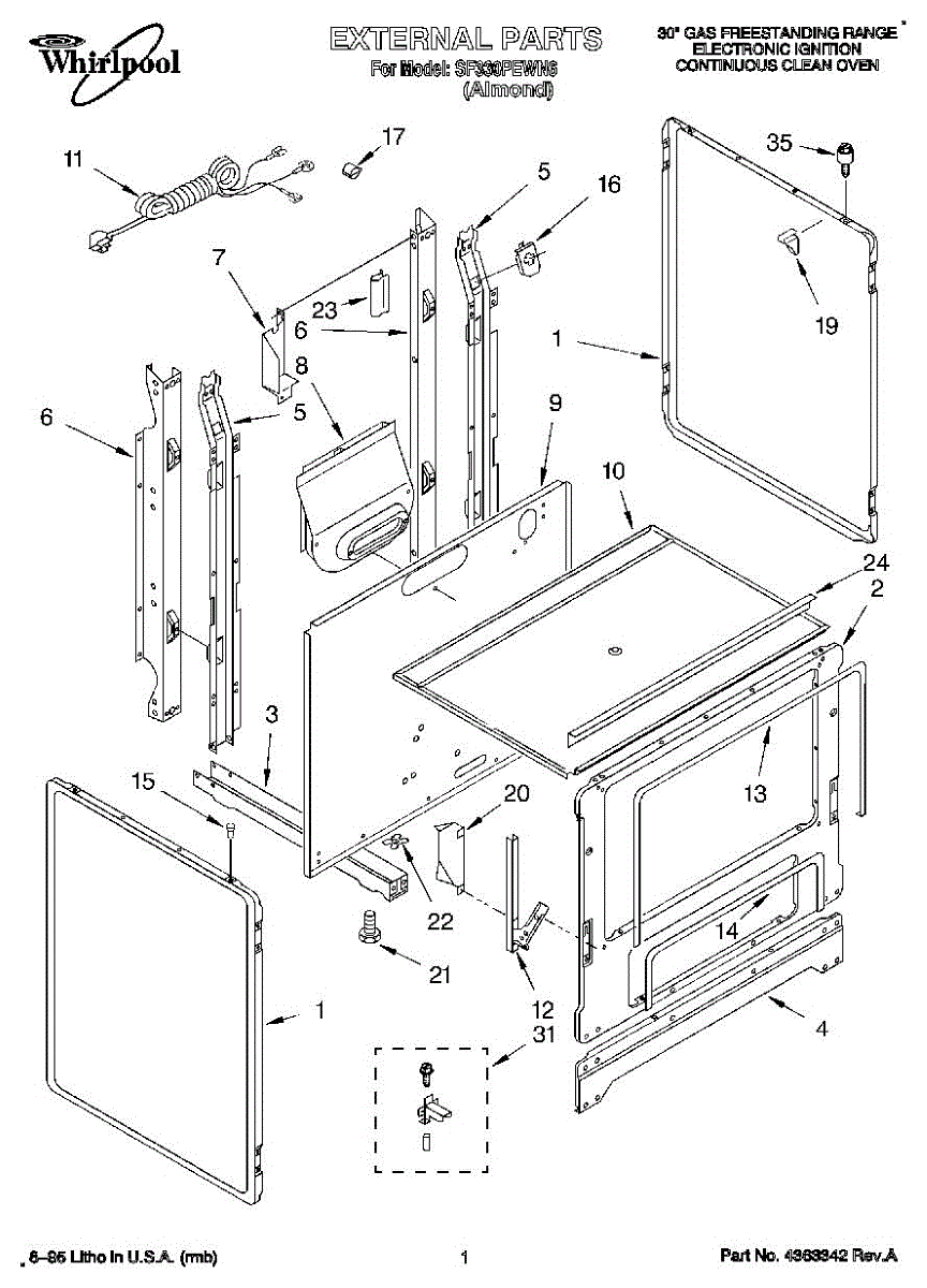 Parts for Whirlpool SF330PEWN6: 01 - External Parts