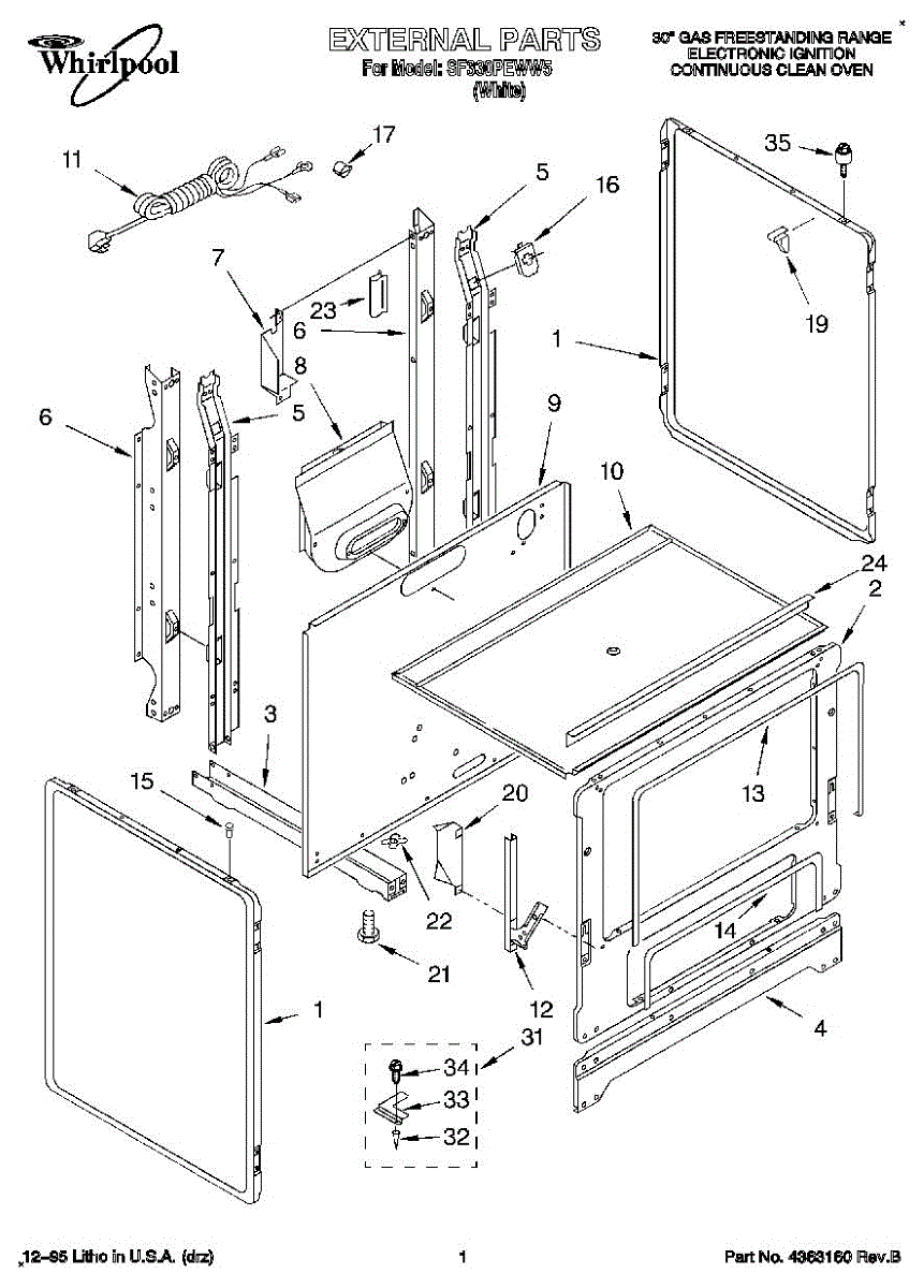 Parts for Whirlpool SF330PEWW5: 01 - External Parts