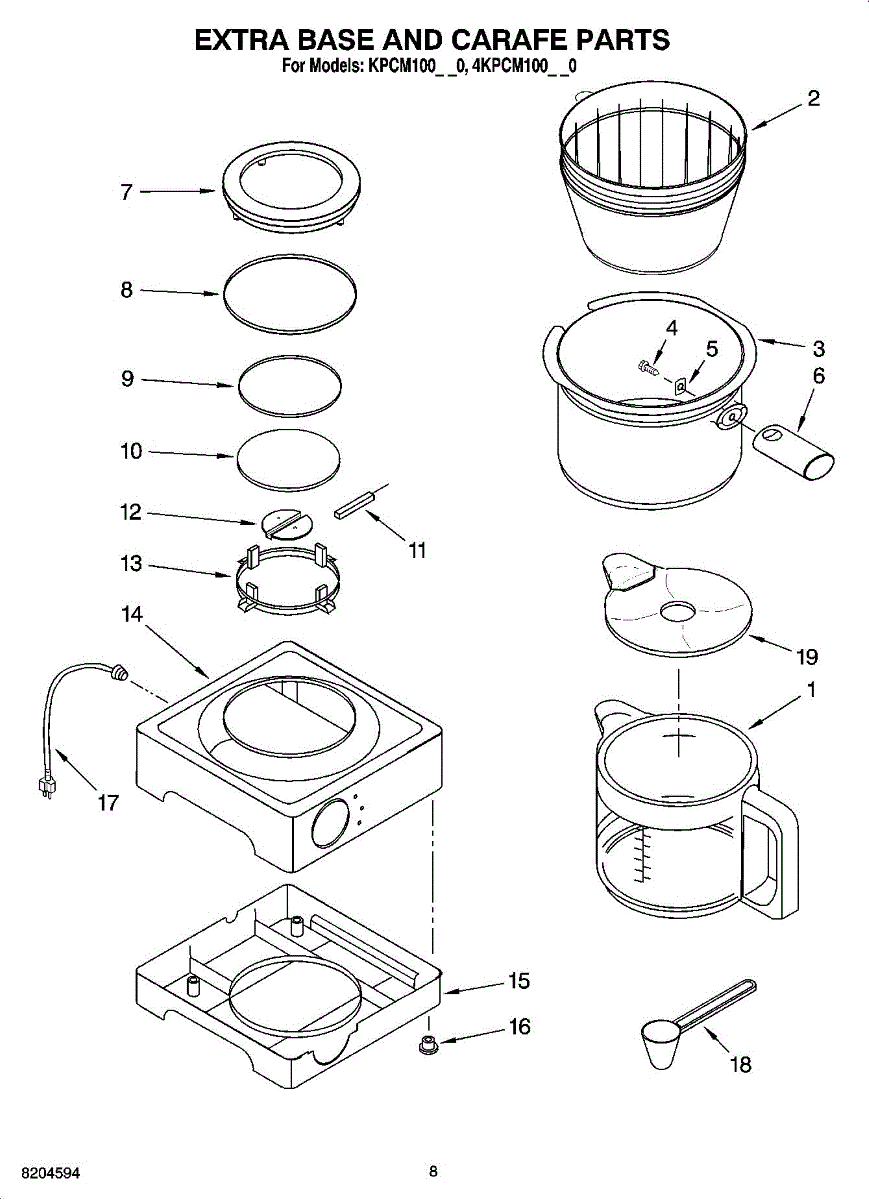 Parts for Whirlpool 4KPCM100PM0: 05 - Extra Base And Carafe Parts