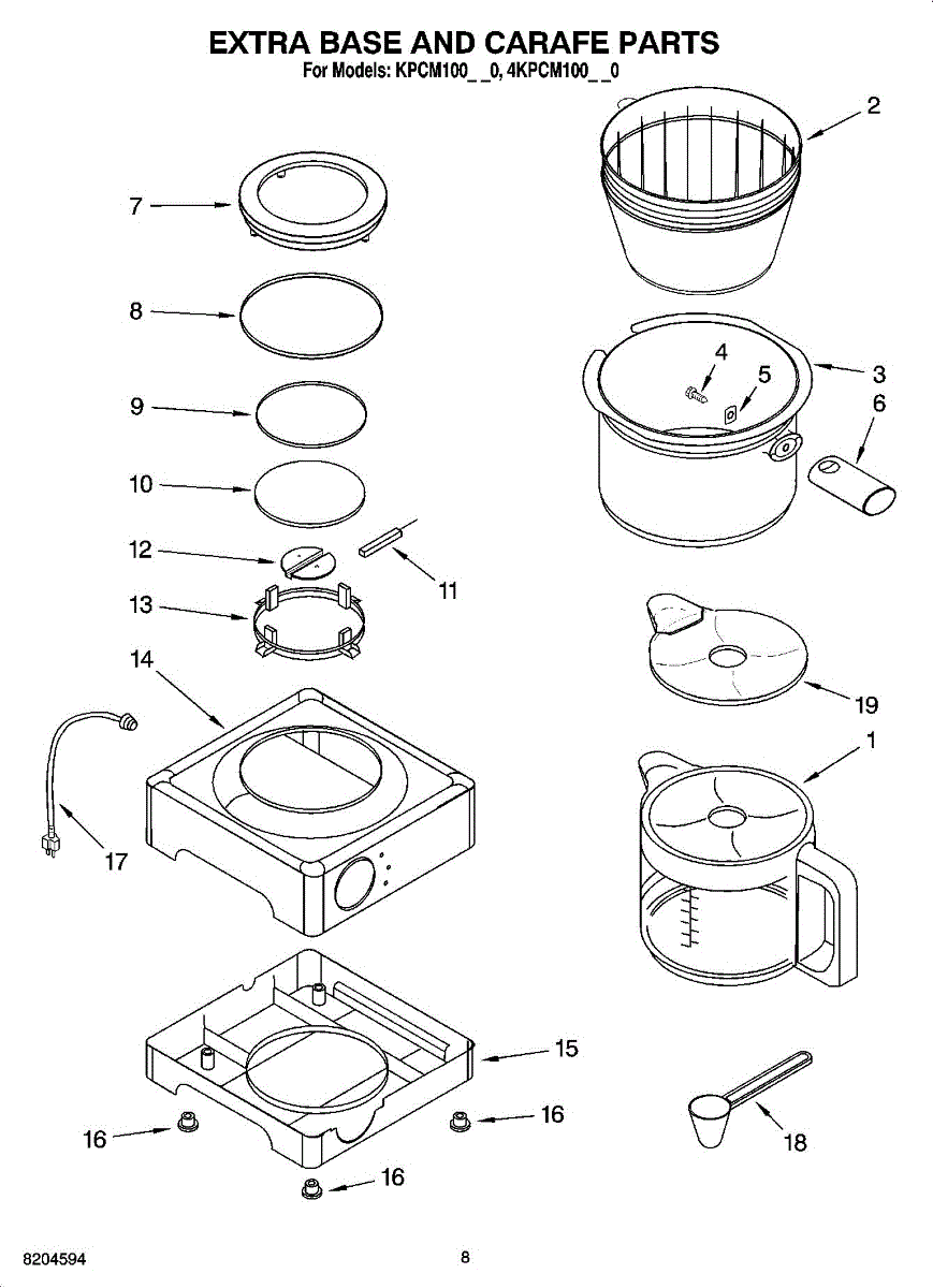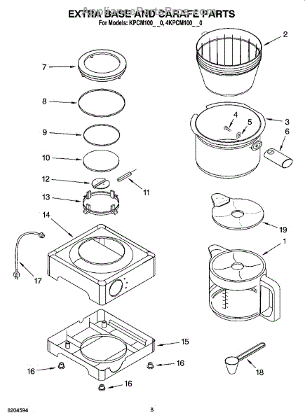 Parts for Kitchenaid KPCM100NP0: 05 - Extra Base And Carafe Parts