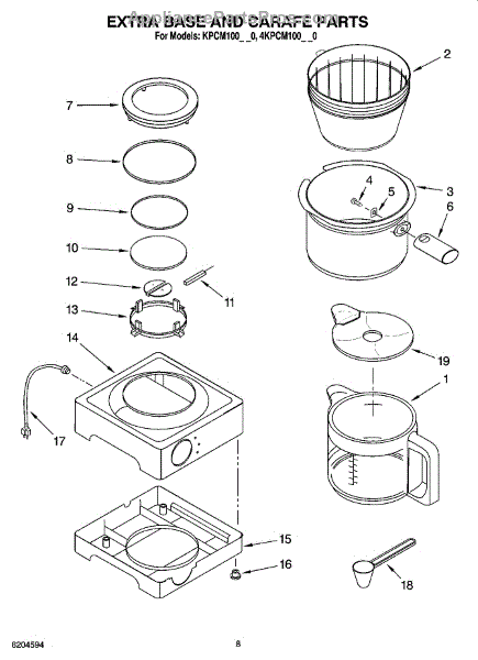 Parts for Kitchenaid KPCM100PM0: 05 - Extra Base And Carafe Parts