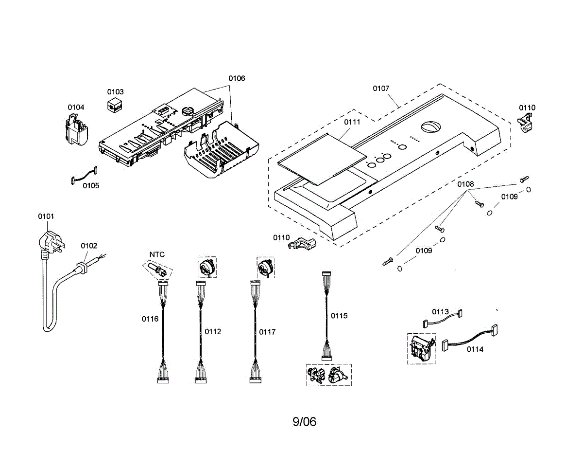 Cable harness for washers. Connects electrical components inside the machine. Replace if wires are damaged, frayed, or connections are loose or broken.