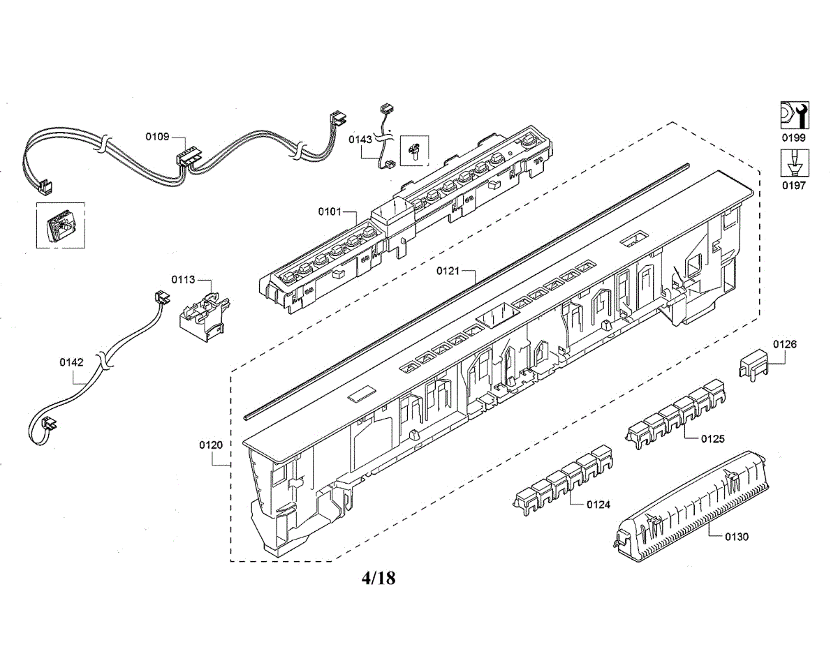 Control panel facia for dishwashers. Houses buttons, display, and cycle selectors. Replace if cracked, faded, or unresponsive. Verify fit with your model number.