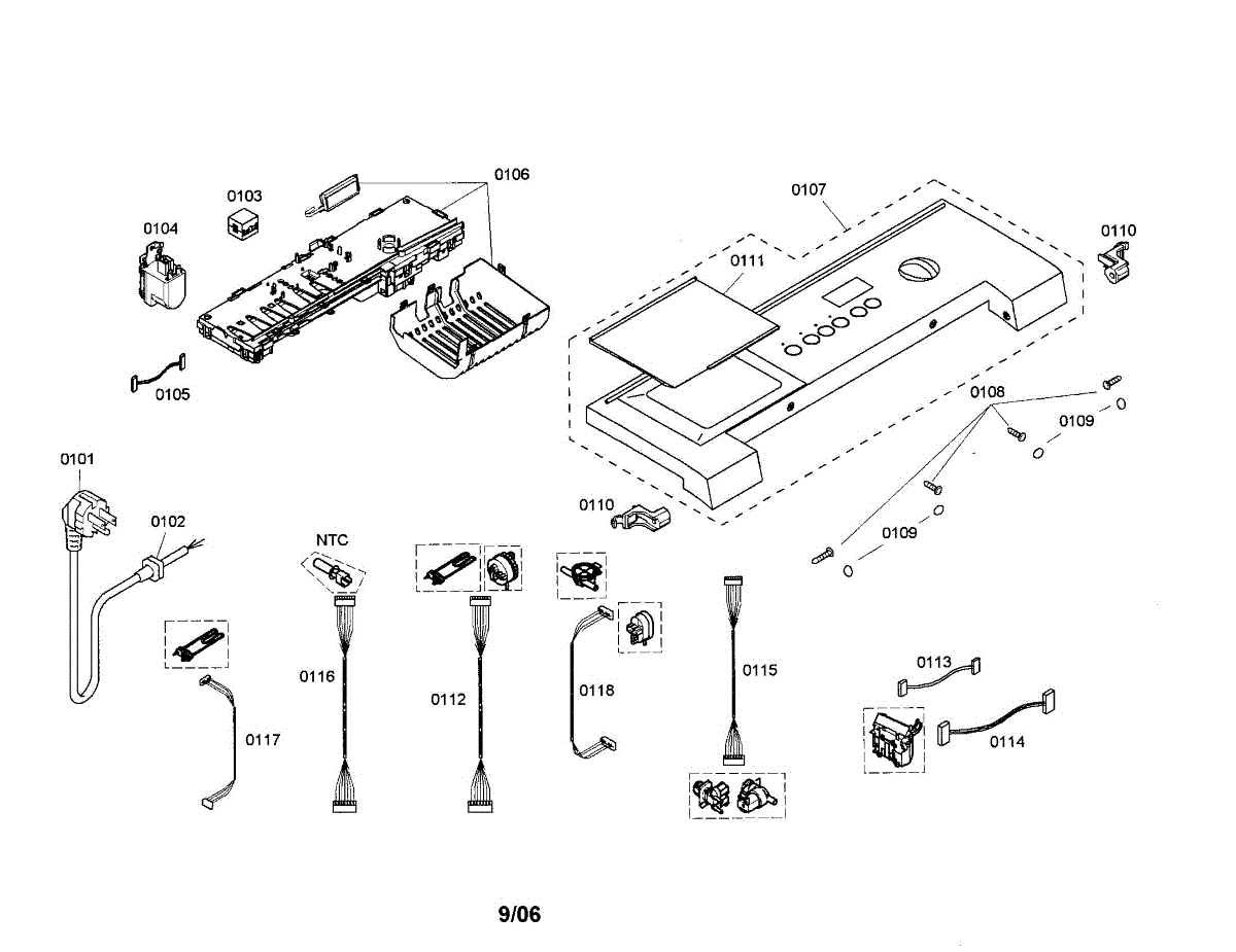 Cable harness for washers. Connects electrical components inside the machine. Replace if wires are damaged, frayed, or connections are loose or broken.