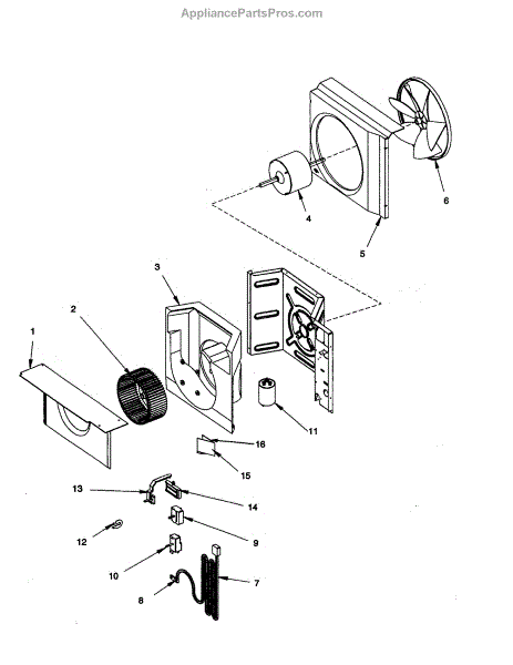 Parts for Amana RC05890A1D REV B: Fan And Control Assembly Parts