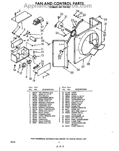 Parts for Whirlpool CHE12RC: 08 - Fan And Control Parts