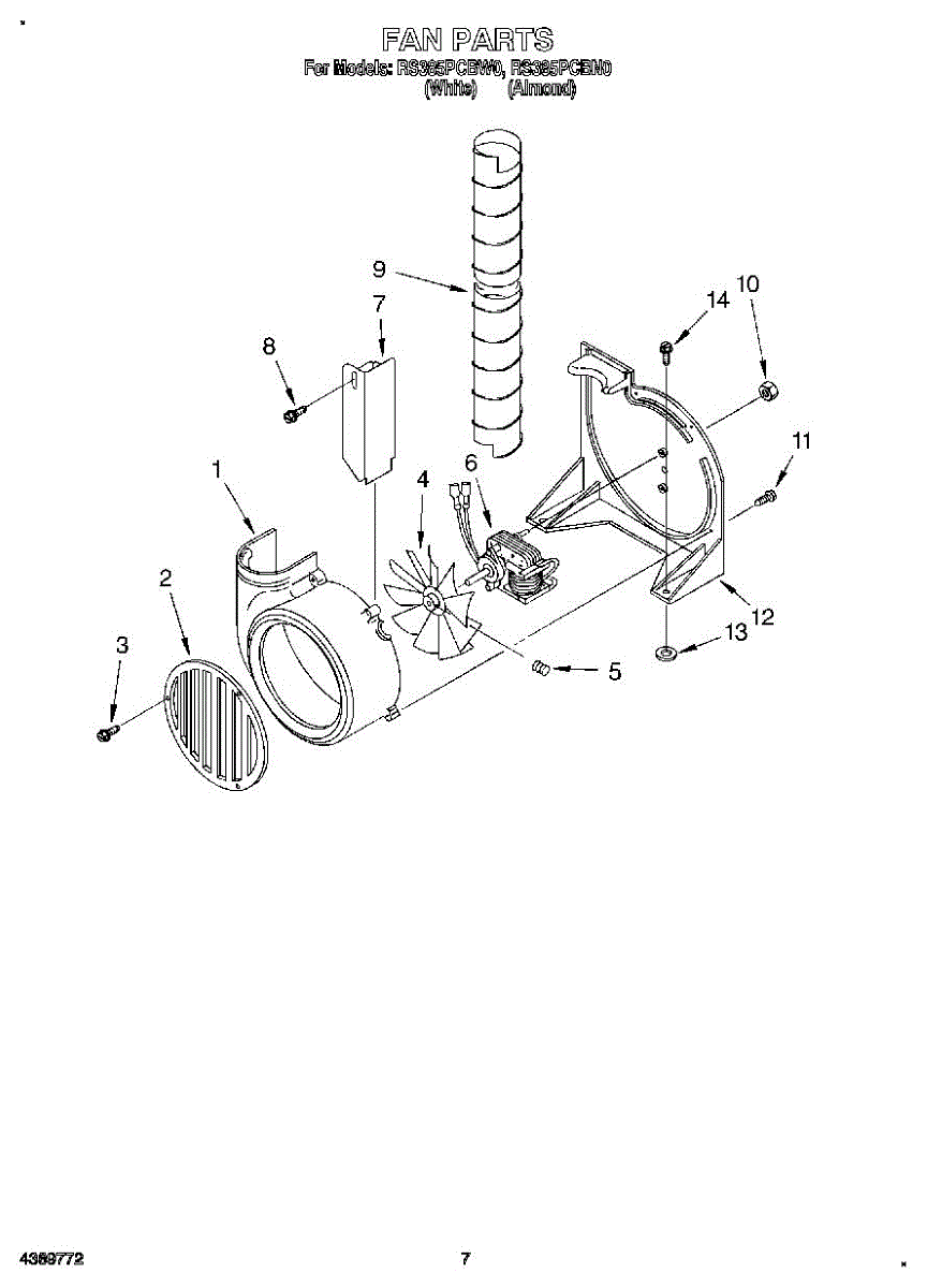 Parts for Whirlpool RS385PCBW0: 05 - Fan, Literature Parts