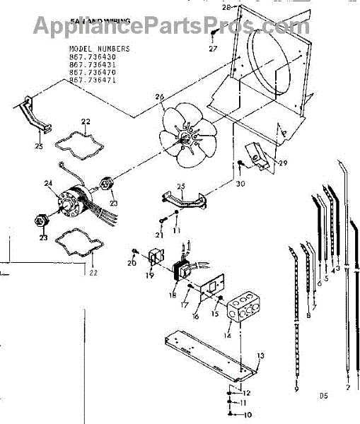 Parts for Kenmore 867.736471 (867736471, 867 736471): Fan And Wiring Parts