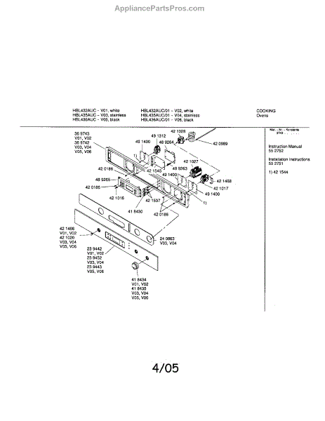 Parts for Bosch HBL435AUC: Fascia Panel Parts