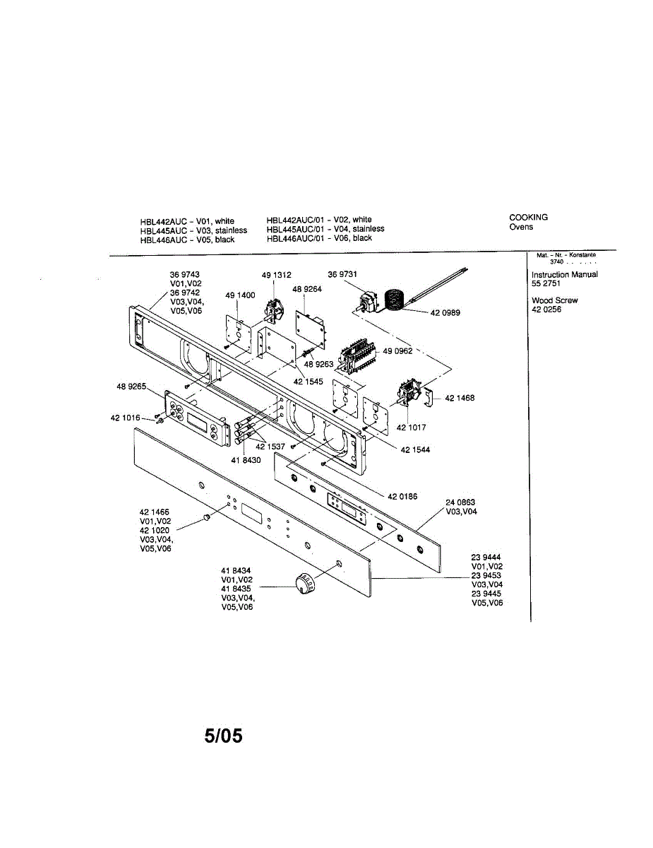 Parts for Bosch HBL445AUC/01: Fascia Panel Parts