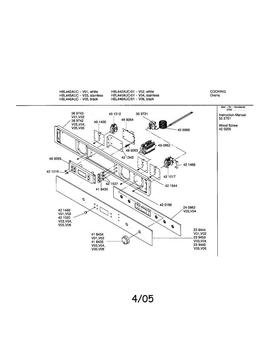 Parts for Bosch HBL445AUC: Fascia Panel Parts