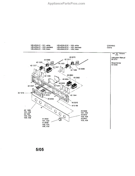 Parts for Bosch HBL452AUC/01: Fascia Panel Parts