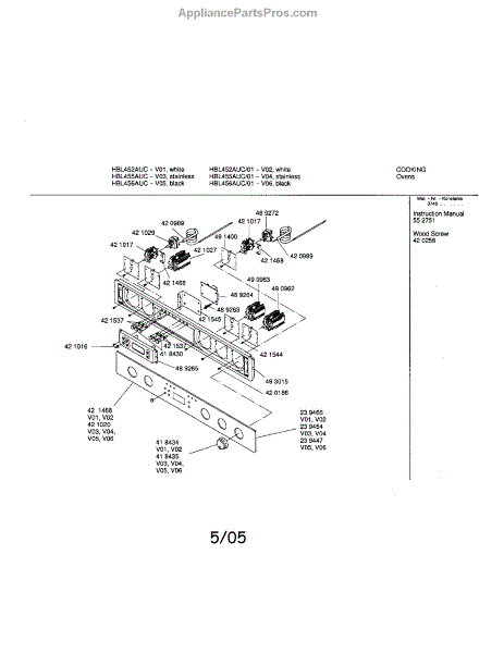 Parts for Bosch HBL455AUC/01: Fascia Panel Parts