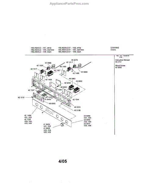 Parts for Bosch HBL456AUC: Fascia Panel Parts