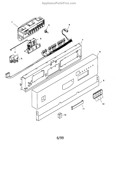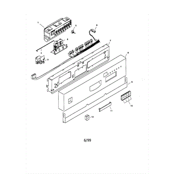 This door latch and strike plate secure the door closed and engage the safety interlock so the appliance can start and run reliably. Replacing a worn latch restores consistent door closure and prevents nuisance cycle interruptions.