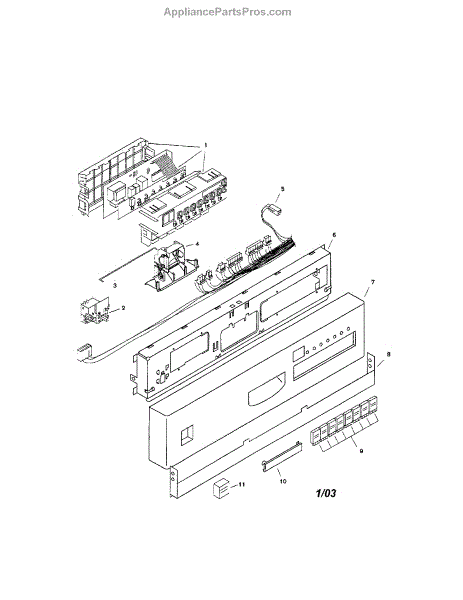 Made by Bosch. Common program control module for Bosch dishwashers SHU53/68. NOTE The manufacturer has redesigned the cover and indicator lights. Lights may be covered by the plastic case. You may have to remove the square covers over the indicator lights if needed. The same case is used for 6 and 8 indicator light models. They also no longer use the red bulb indicator lights, small surface mounted lights are used instead. If you require the Jumper Wire that goes with certain models, the part number is 00167782.