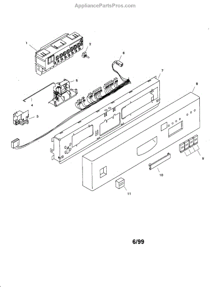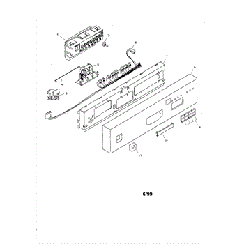 This door latch and strike plate secure the door closed and engage the safety interlock so the appliance can start and run reliably. Replacing a worn latch restores consistent door closure and prevents nuisance cycle interruptions.