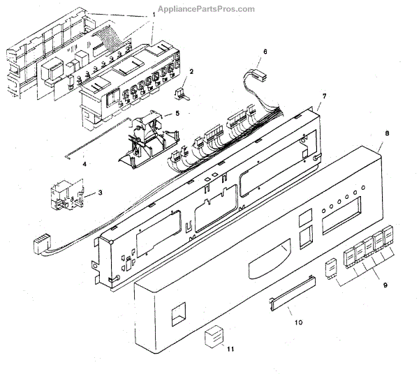 Made by Bosch. Common program control module for Bosch dishwashers SHU53/68. NOTE The manufacturer has redesigned the cover and indicator lights. Lights may be covered by the plastic case. You may have to remove the square covers over the indicator lights if needed. The same case is used for 6 and 8 indicator light models. They also no longer use the red bulb indicator lights, small surface mounted lights are used instead. If you require the Jumper Wire that goes with certain models, the part number is 00167782.
