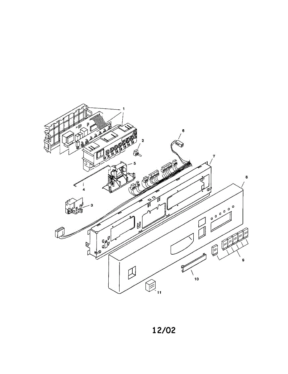 Wire harness for dishwasher fascia panel. Connects control panel electronics to main system. Replace if wires are frayed, damaged, or connector broken.