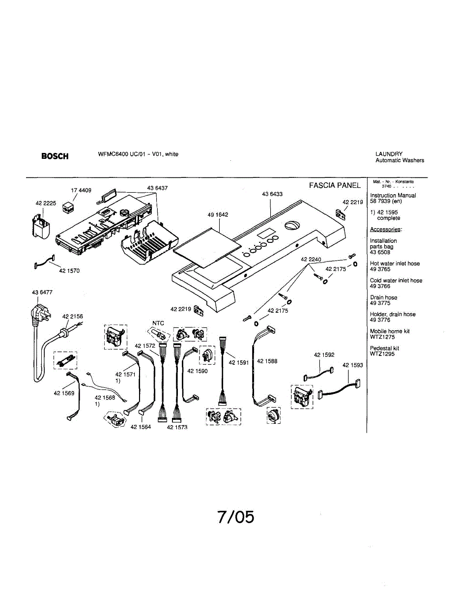 Cable harness for washers. Connects electrical components inside the machine. Replace if wires are damaged, frayed, or connections are loose or broken.