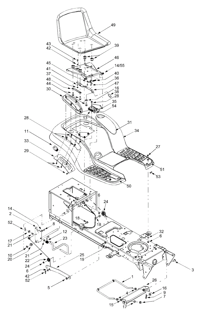 Seat pivot bracket for lawn tractors and riding mowers. Secures the seat to the frame and allows adjustment. Replace if cracked, bent, or broken.