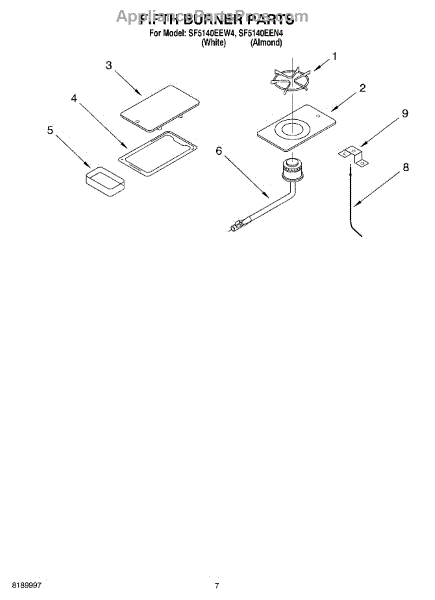 Parts for Whirlpool SF5140EEW4: 05 - Fifth Burner Parts