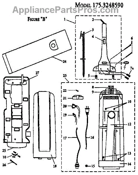 Parts for Kenmore 175.3248590 (1753248590, 175 3248590): Figure "B" Parts