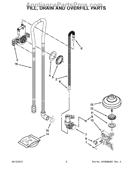 Carries wastewater from your dishwasher to the household drain. Replace if cracked, punctured, or leaking. Installs at pump outlet and drain connection.