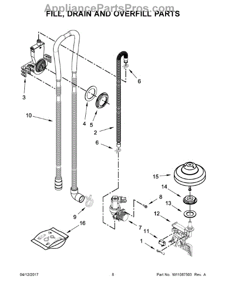 The Fill Hose is an OEM part for Whirlpool dishwashers. This hose is responsible for delivering water from your home’s water supply to the dishwasher during the wash cycles. It ensures that the appliance receives the necessary amount of water to clean dishes effectively.