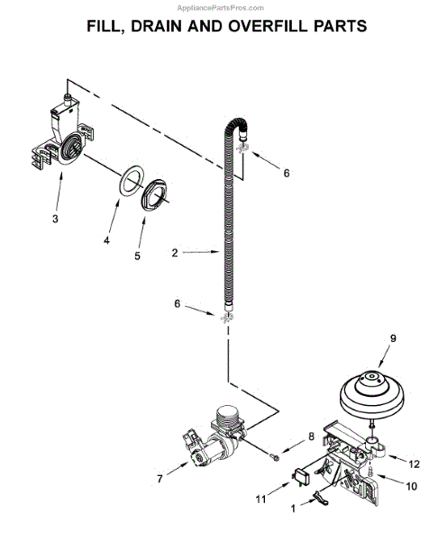 Fix dishwasher leaks from the tub floor with this overfill protector housing. Guides the float and positions the switch actuator to restore protection.
