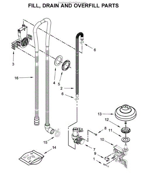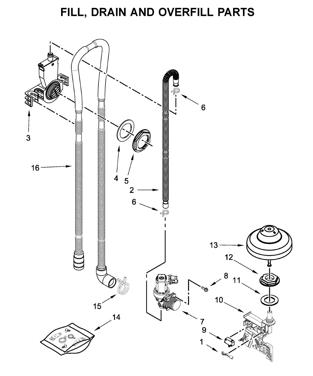 Parts for Kitchenaid KDFE104HBS0: Fill, Drain And Overfill Parts
