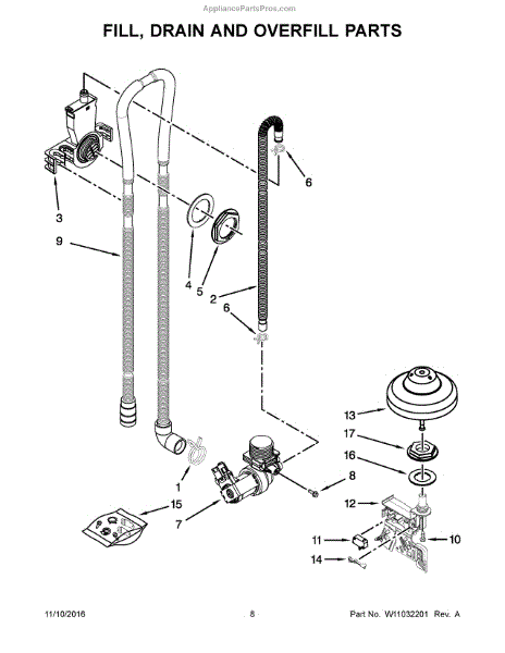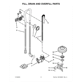 Parts for Kenmore 665.13223N413 (66513223N413, 665 13223N413): Fill, Drain And Overfill Parts