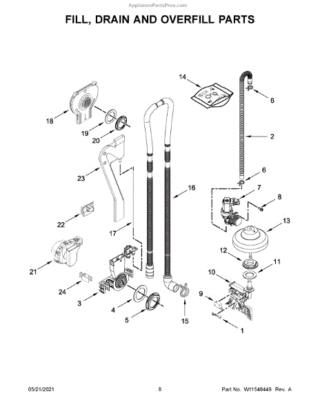 The Fill Hose is an OEM part for Whirlpool dishwashers. This hose is responsible for delivering water from your home’s water supply to the dishwasher during the wash cycles. It ensures that the appliance receives the necessary amount of water to clean dishes effectively.