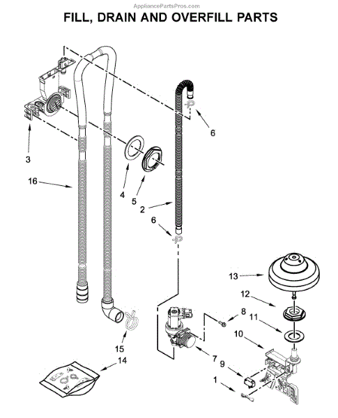 Parts for Kitchenaid KDTE204GPS1: Fill, Drain And Overfill Parts