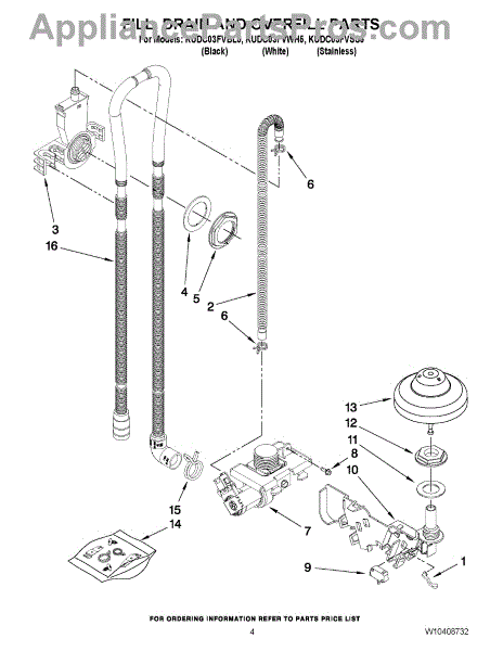 Parts for Kitchenaid KUDC03FVWH5: 04 - Fill, Drain And Overfill Parts