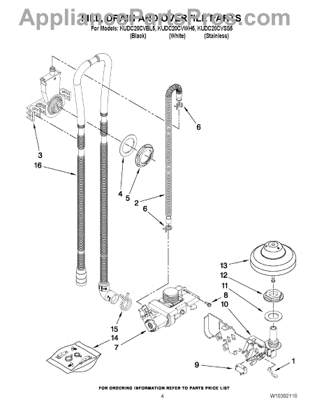 Parts for Kitchenaid KUDC20CVWH5: 04 - Fill, Drain And Overfill Parts