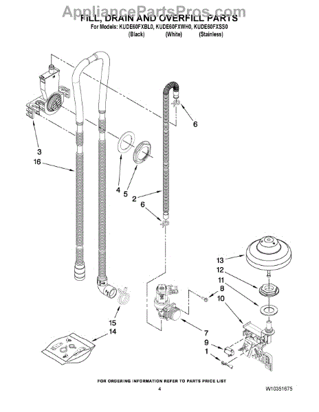 Parts for Kitchenaid KUDE60FXWH0: 04 - Fill, Drain And Overfill Parts