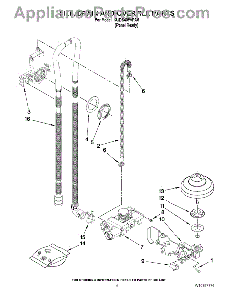 This overfill control float assembly sits in the dishwasher tub and rises with the water level. It works with the float switch to shut off the inlet valve, helping prevent overfilling and potential leaks.