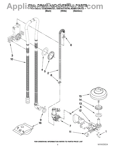 Parts for Maytag MDB8959AWB6: 04 - Fill, Drain And Overfill Parts