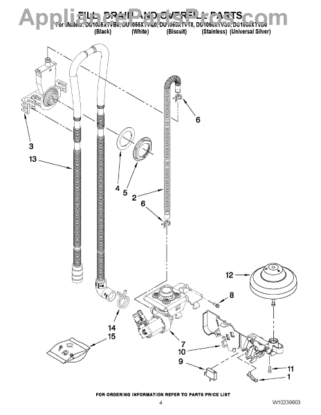 Parts for Whirlpool DU1055XTVD0: 04 - Fill, Drain And Overfill Parts