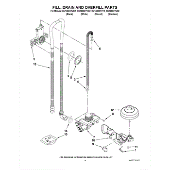Parts for Whirlpool DU1300XTVB2: 04 - Fill, Drain And Overfill Parts